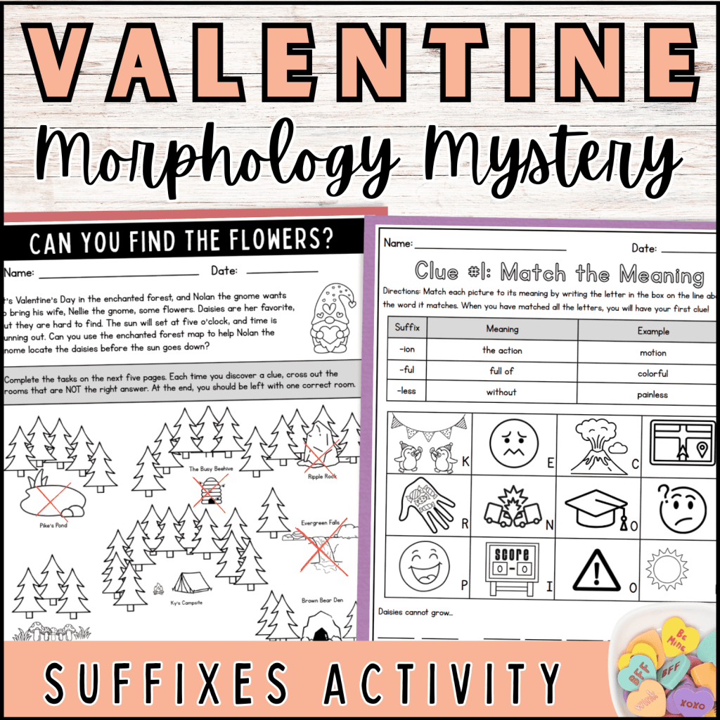 My “Morphology Mysteries” include reading passages that teach morphemes in context. Each one has five activities that students complete to reveal clues and solve the mystery.